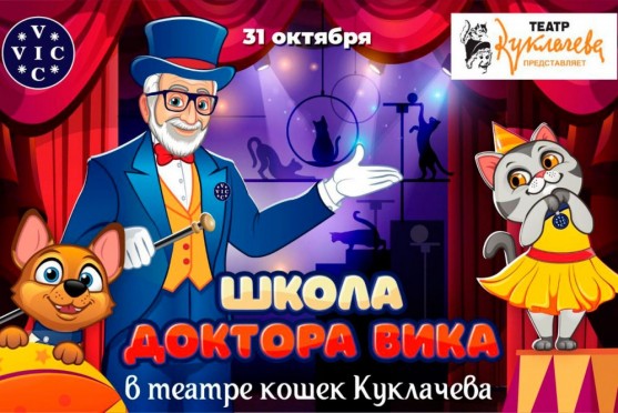 30 и 31-го октября в нашем театре пройдет уникальное событие! Приглашаем вас пройти обучение в школе доктора ВИКа, где будут преподавать настоящие практикующие ветврачи, профессионалы своего дела! А апофеозом обучения будет веселый интерактивный спектакль с участием наших кошек!